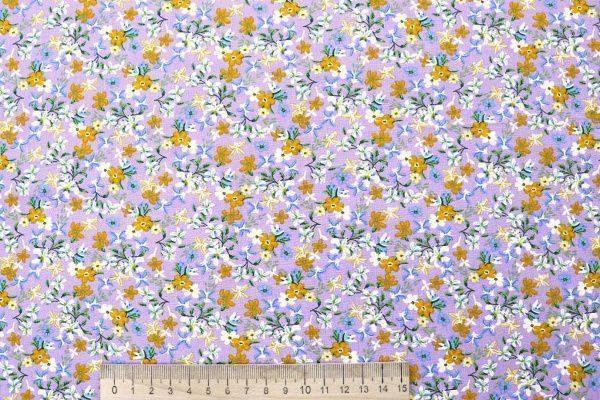 Штапель принт/цветы пурпурно-зеленые на светло-оливковом 4203-PY/D#85/C#2 (12473)