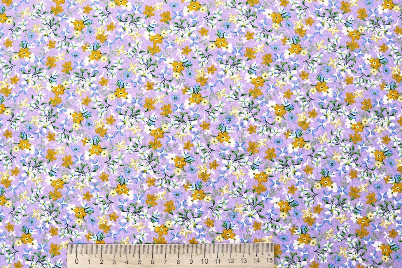 Штапель принт/цветы белые на арахисовом 4203-PY/D#61/C#4