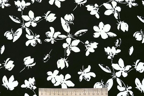 —Штапель принт/цветы белые на черном 4203-PY/D#69/C#1 33 пог/м.