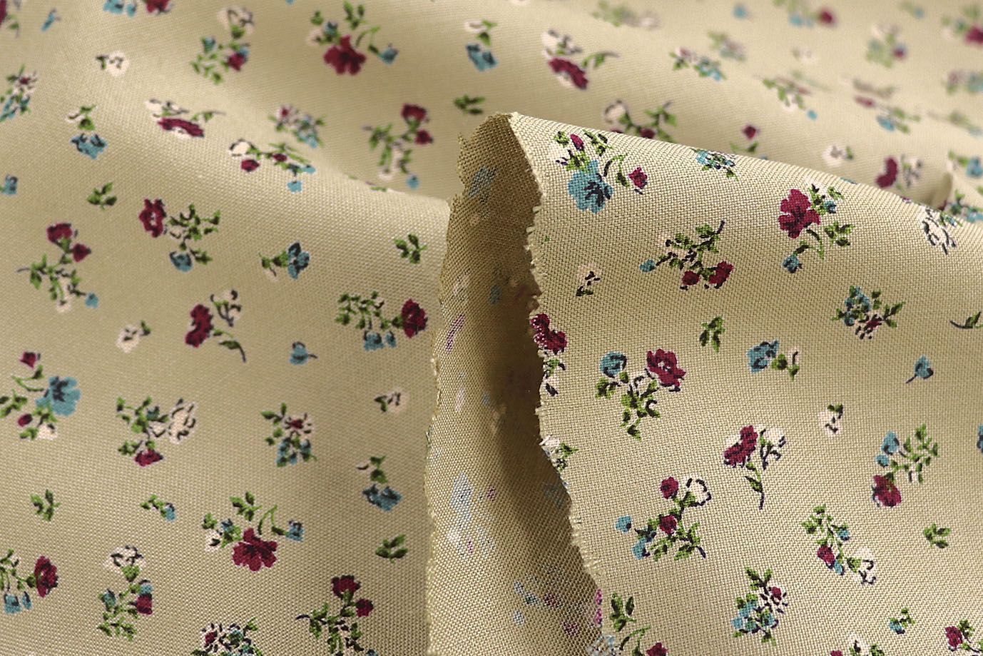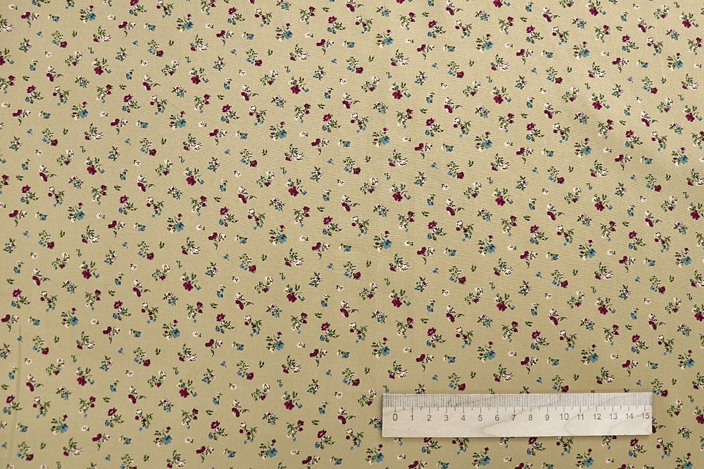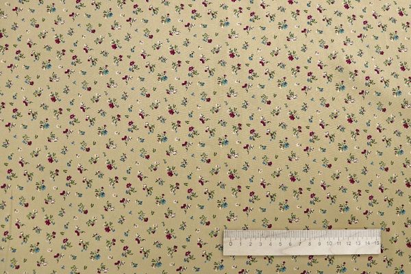 Штапель принт/цветы бордово-бирюзовые на бежевом 1466-PY/D#2/C#1