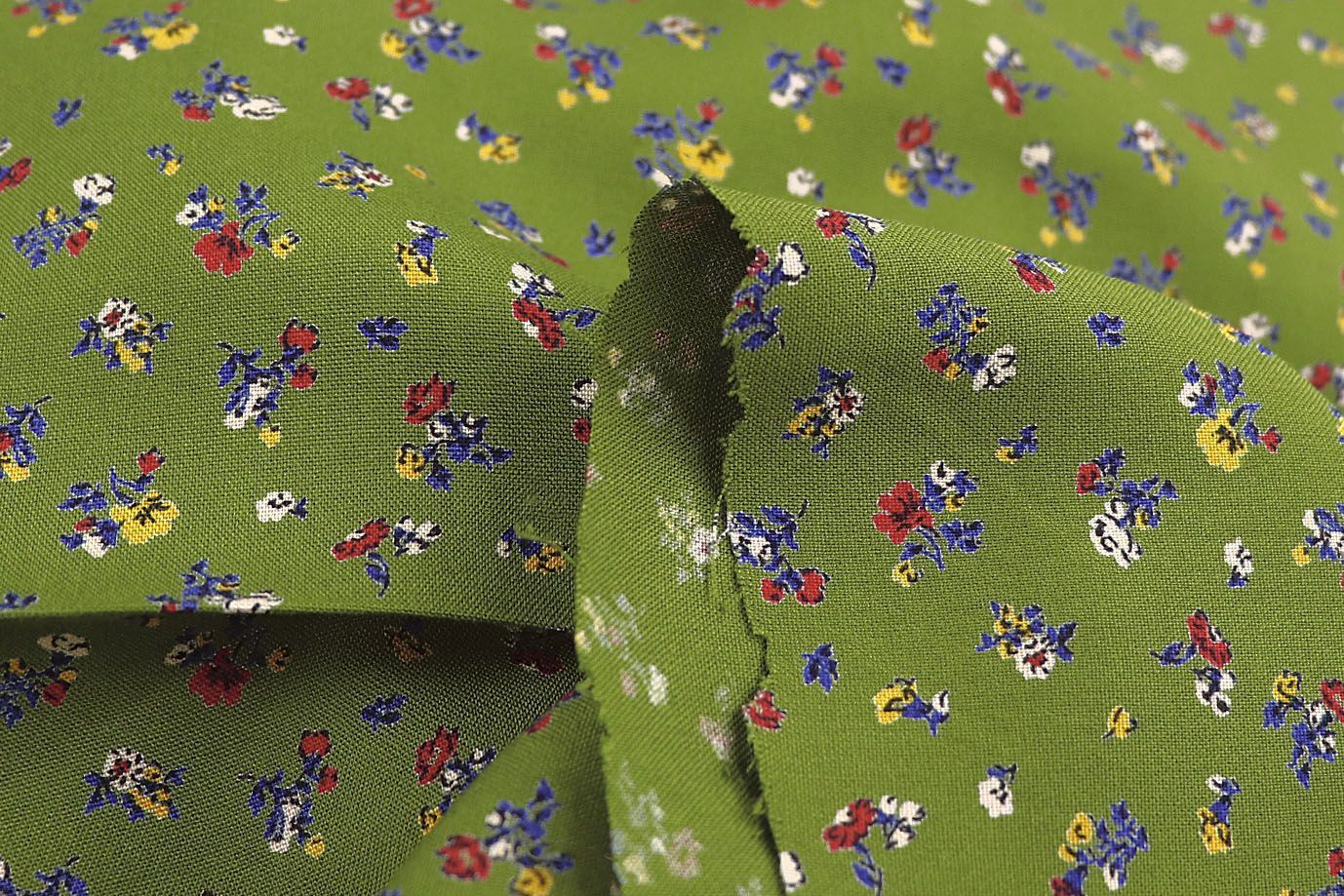—Штапель принт/цветы красно-синие на салатовом 1466-PY/D#2/C#2 30 пог/м.