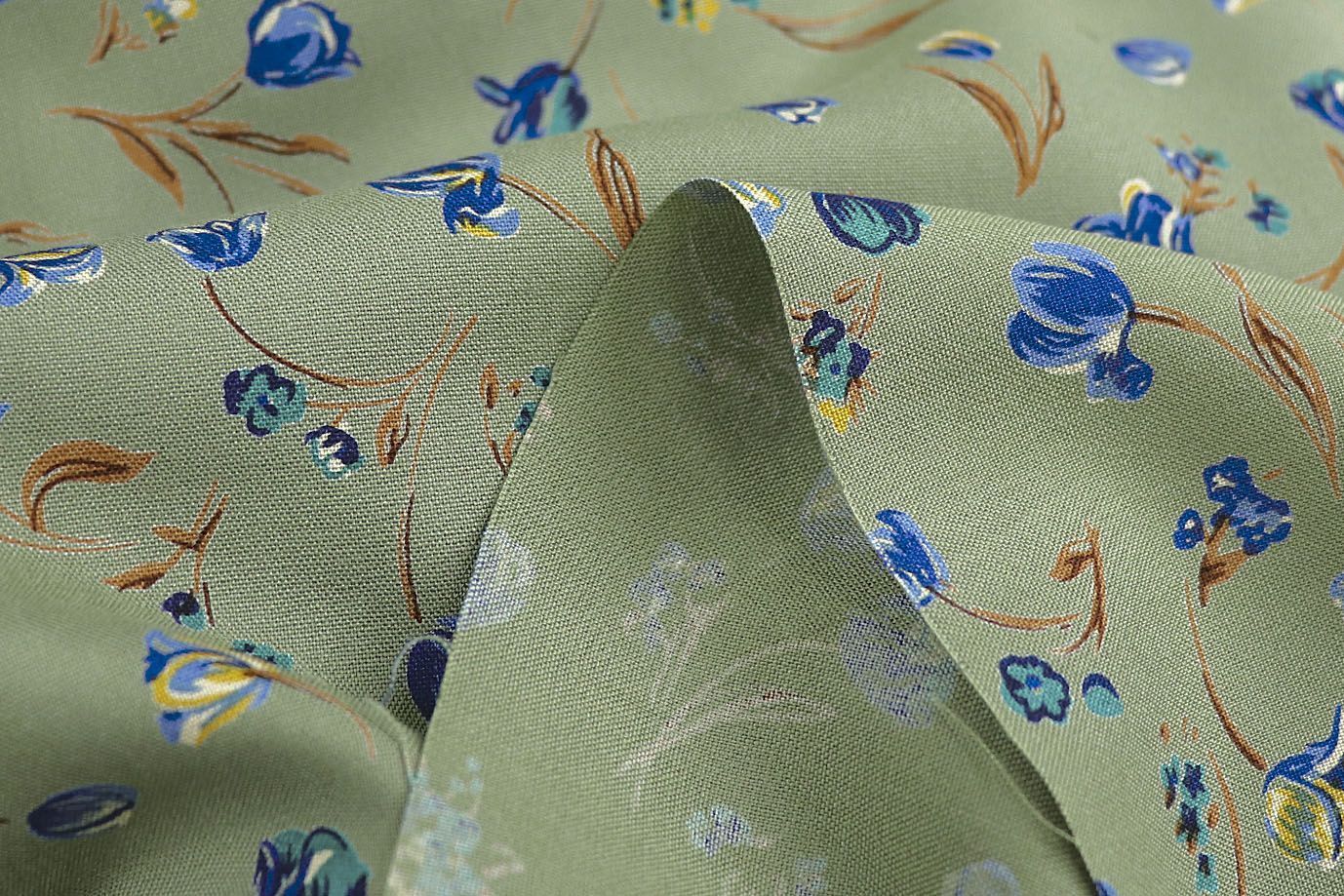 —Штапель принт/цветы синие на бледно-зеленом 1466-PY/D#3/C#1 30 пог/м.