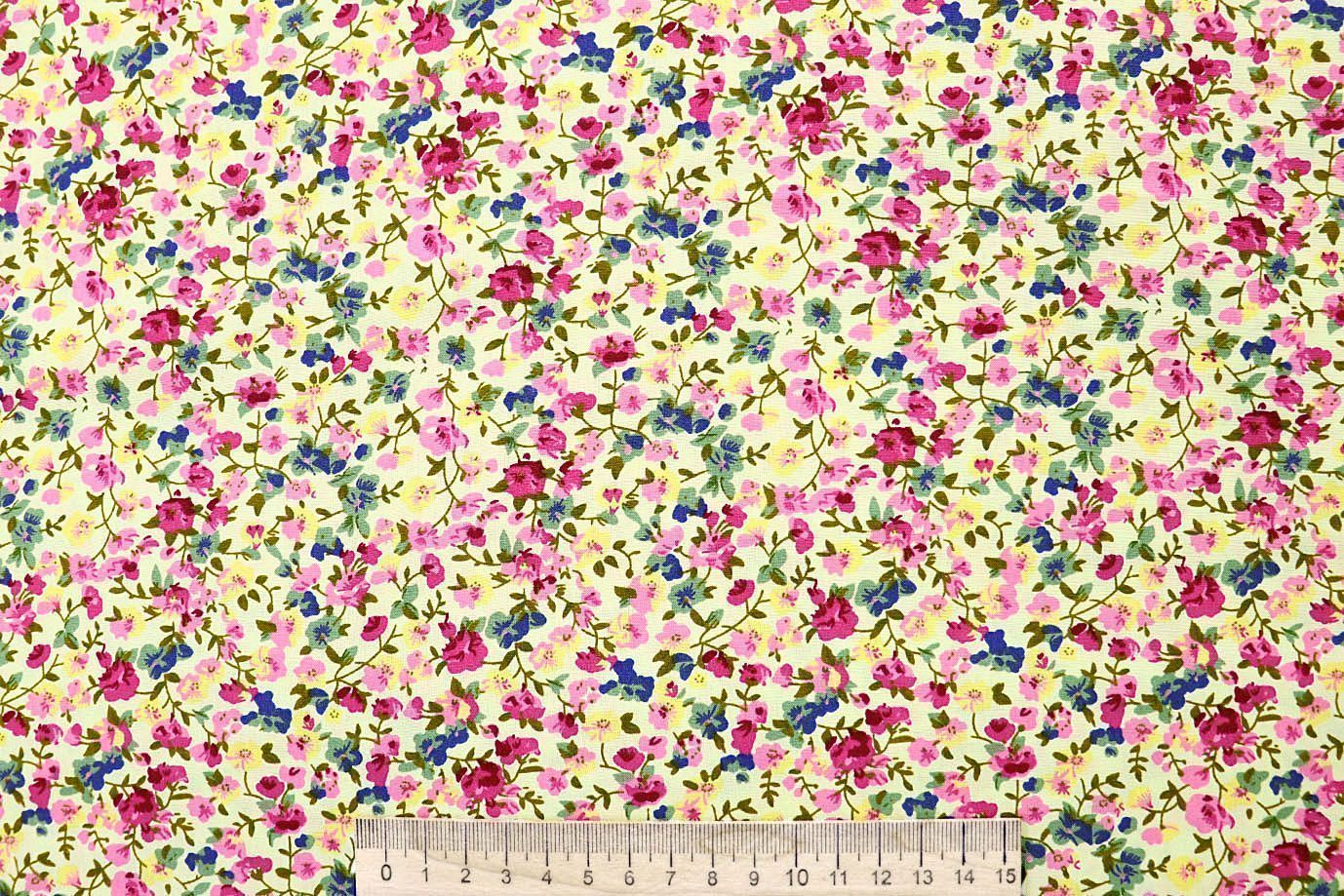 Штапель принт/цветы розово-зеленые на кремовом 4203-PY/D#79/C#1 33 пог/м.