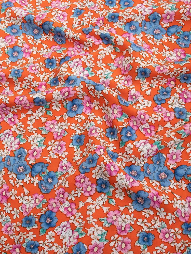 Штапель принт/цветы на оранжевом 2758-PY/D#6/C#5