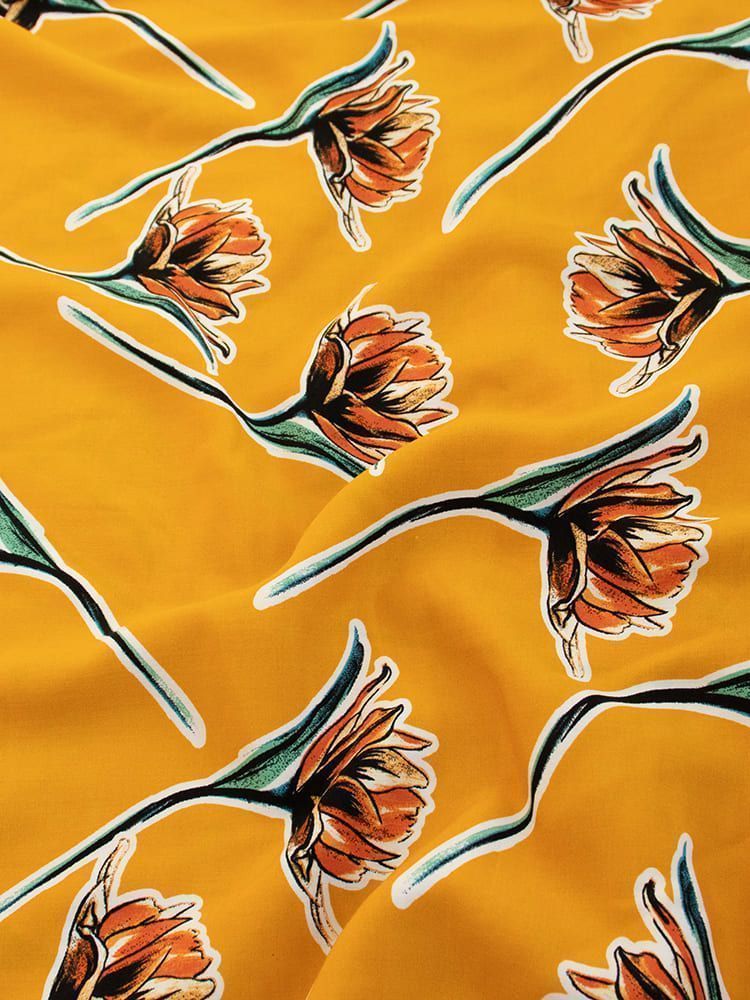Штапель лен принт/цветы кирпичные на оранжевом VT-10464/D#6/C#1 25 пог/м.
