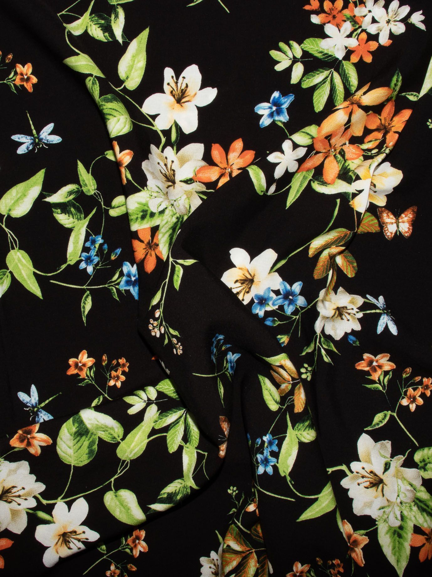 Штапель принт/цветы на черном 2740/D#5/C#2 (10464)