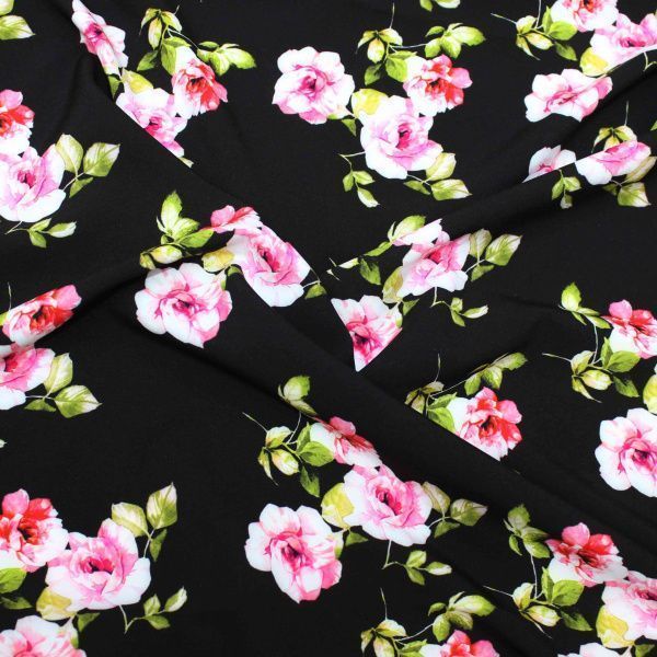 Супер софт принт/цветы розовые на черном 2715-PY/D#3/C#1 25 пог/м.