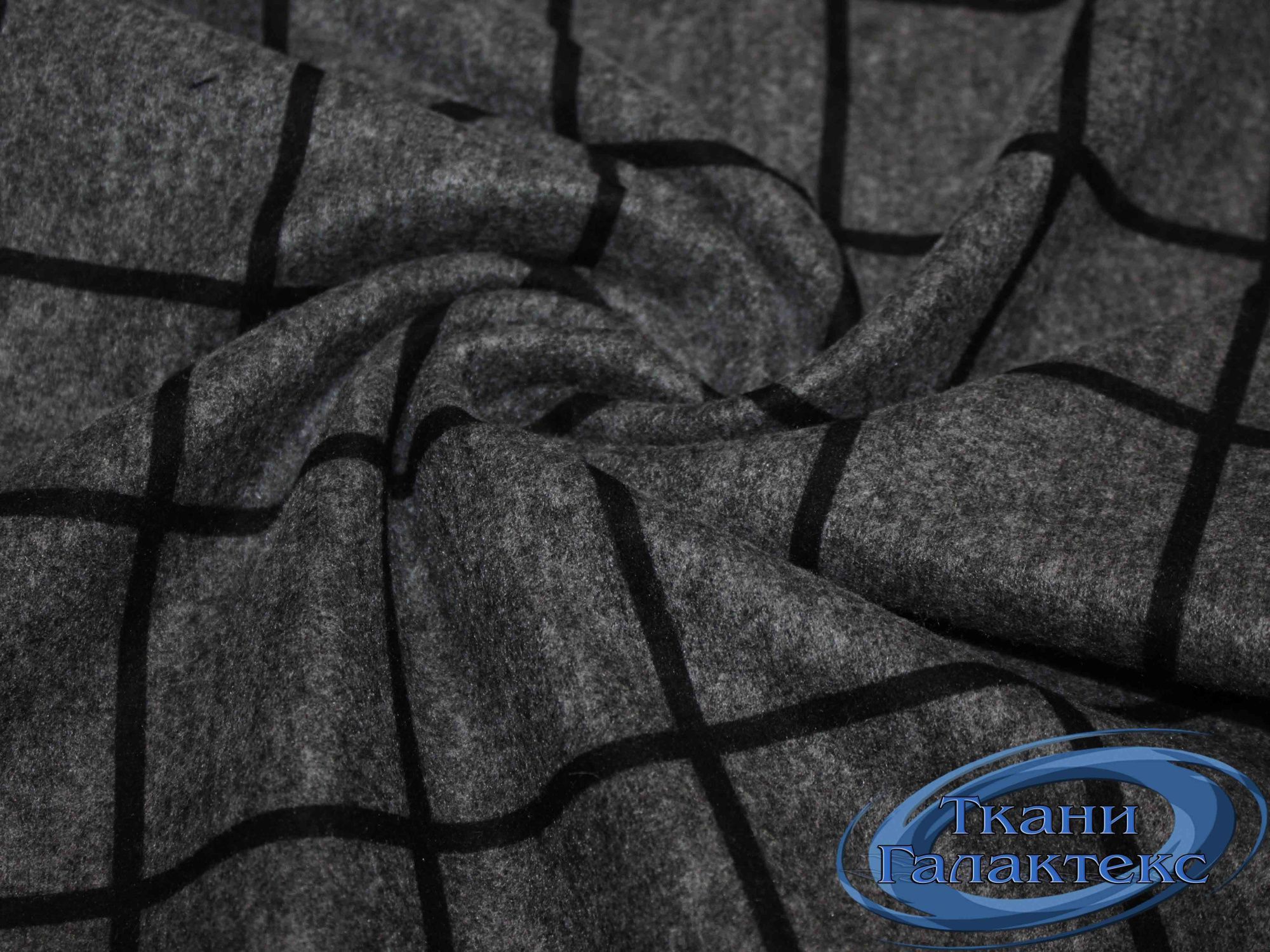 —Трикотаж принт/клетка черная на темно-сером VT-9536/D6/C#2 25 пог/м.