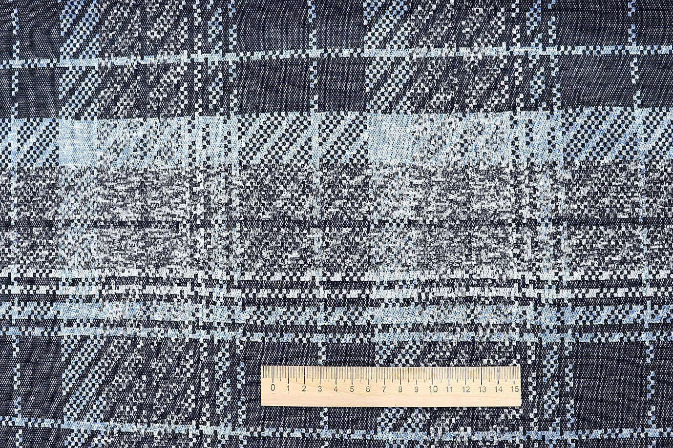 Трикотаж жаккард принт/клетка сине-серая 3257-22-PY/D#13/C#2