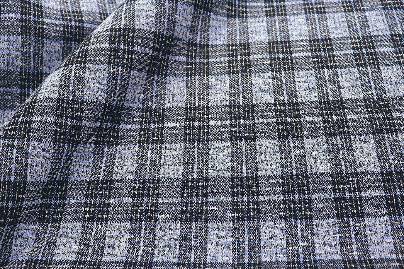 Трикотаж жаккард принт/клетка сине-серая 3257-22-PY/D#13/C#2