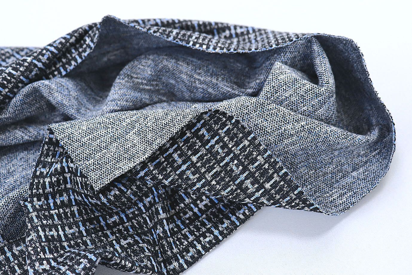 Трикотаж жаккард принт/клетка сине-серая 3257-22-PY/D#13/C#2