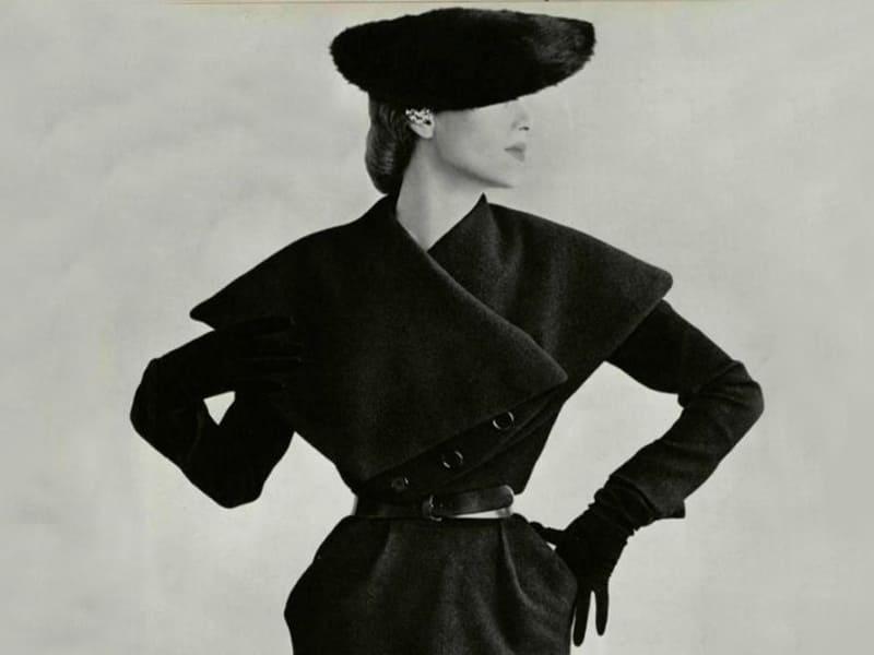 - «Вертикальная» и «косая» линии пятидесятых годов прошлого века. В первой коллекции были представлены визуально вытянутые силуэты, а во второй – скошенные и шалевые воротники.