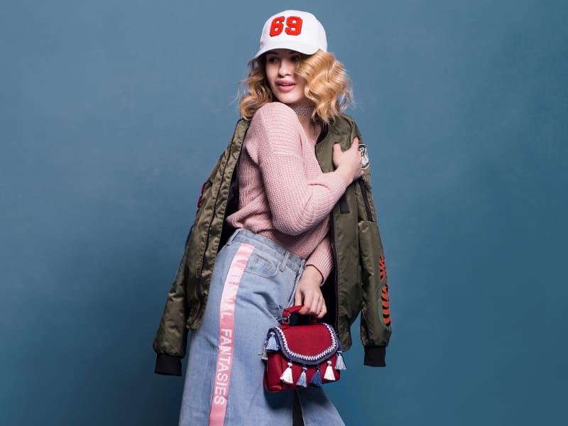 Из джинсовой ткани изготовляются также женские сумки, головные уборы, обувь.