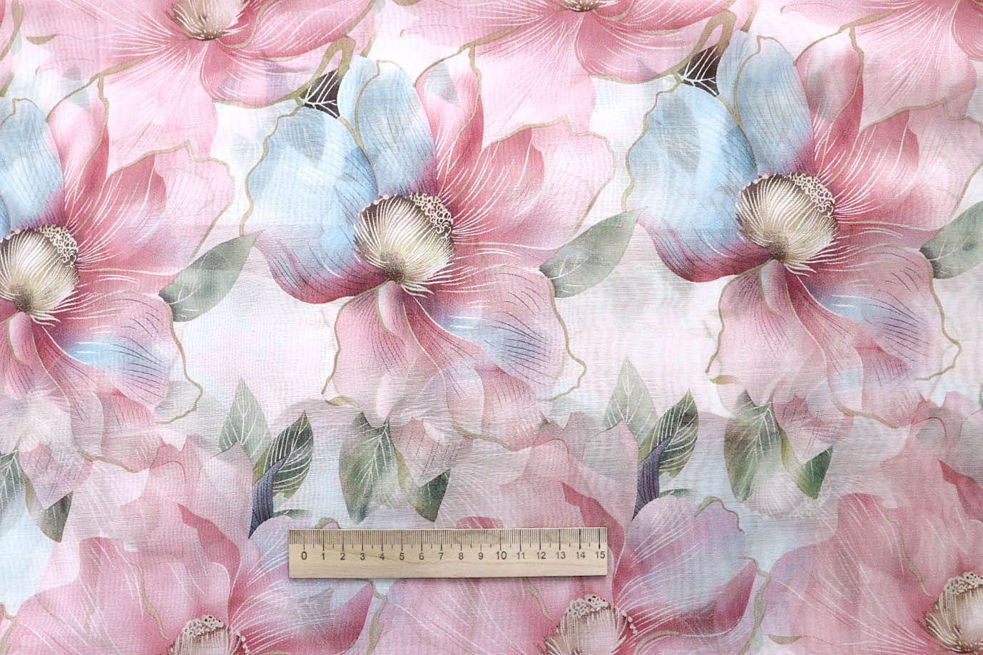 —Вуаль принт/цветы розово-голубые на белом 4152-PY/C#2 49 пог/м.